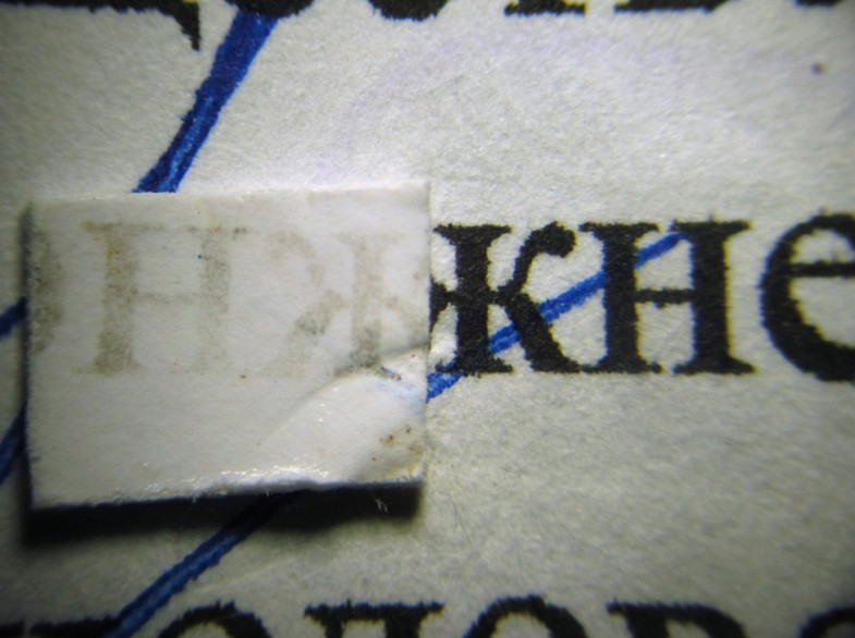 Иллюстрация 20. Образец 3 (механическое удаление тонера: чернила для капиллярной ручки расположены над текстом).