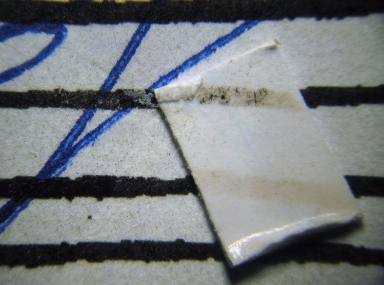Иллюстрация 32. Образец 4 (механическое удаление тонера, чернила для гелевой ручки расположены над текстом).